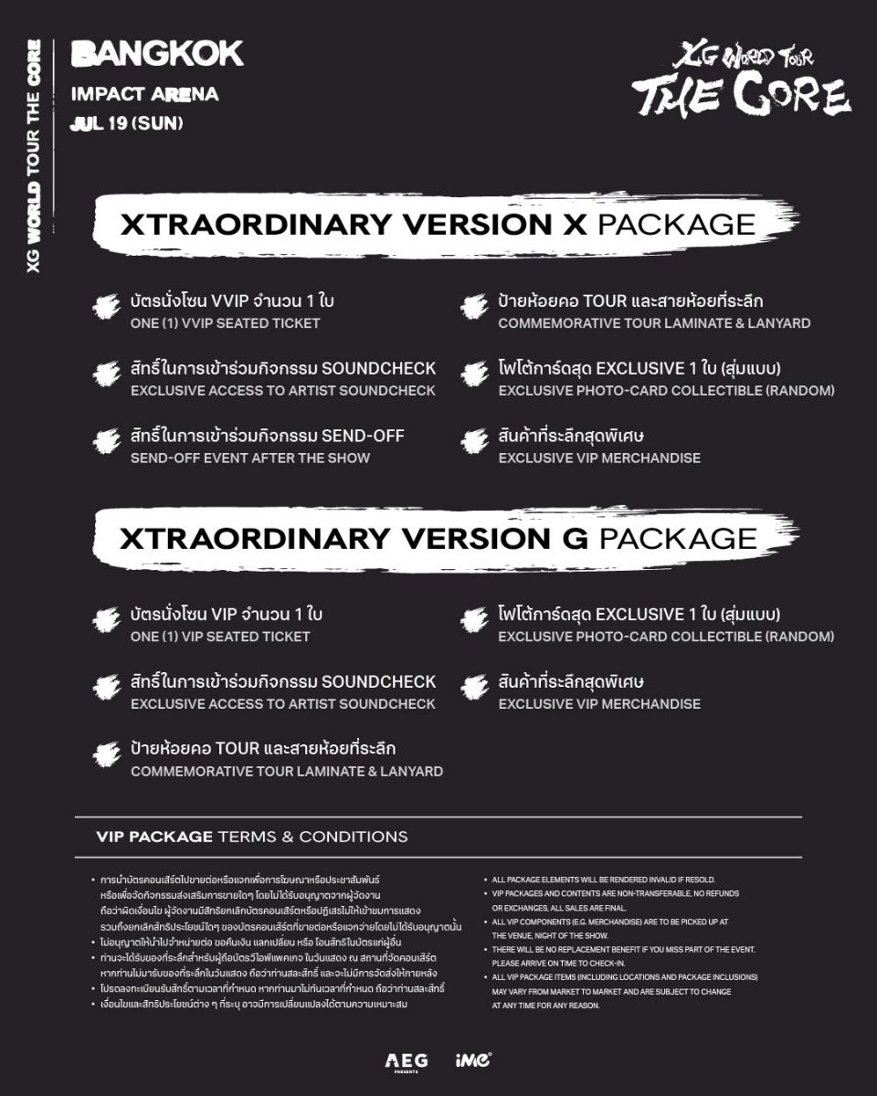หลังจากความสำเร็จอย่างท่วมท้นจนฉุดไม่อยู่ สมาชิกทั้ง 7 คนของ XG อันประกอบไปด้วย จูริน (JURIN), จิสะ(CHISA), ฮินาตะ (HINATA), ฮาร์วีย์ (HARVEY), จูเรีย (JURIA), มายะ (MAYA) และ โคโคนะ (COCONA) พร้อมแล้วที่จะปลดปล่อยพลังที่แท้จริงจากภายในสู่การเดินทางครั้งใหม่ใน "XG WORLD TOUR: THE CORE" ซึ่งทัวร์ครั้งนี้ได้เปิดตัวอย่างสวยงามในประเทศญี่ปุ่นด้วยกระแสตอบรับอย่างมหาศาล จนสามารถสร้างสถิติบัตรจำหน่ายหมดเกลี้ยง (Sold Out) ในหลายเมืองใหญ่ อาทิ โยโกฮามา, โอซาก้า, นาโกย่า และเมืองอื่นๆ ภายในทัวร์ครั้งนี้ แฟนๆ จะได้ชมการแสดงในเพลงฮิตที่คุ้นเคยอย่าง ‘LEFT RIGHT’ และ ‘WOKE UP’ รวมถึงเพลงใหม่ล่าสุดอย่าง ‘HYPNOTIZE’ และ ‘ROCK THE BOAT’ และตอนนี้ถึงเวลาแล้วที่ XG จะนำประสบการณ์การแสดงที่ทลายทุกขีดจำกัด และความสร้างสรรค์ที่เหนือจินตนาการมาสู่กรุงเทพฯ ในเดือนกรกฎาคมนี้ โดยจะมาพร้อมกับโปรดักชันที่ยิ่งใหญ่ และอลังการกว่าที่เคยมีมา!