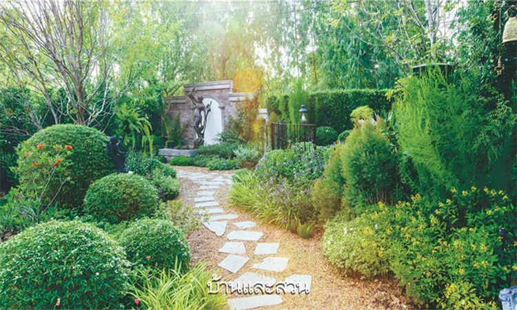 “เมื่อ 3 ปีก่อนสวนนี้ยังเป็นสไตล์สวนเขียวๆแนวทรอปิคัลตามแบบฉบับของหมู่บ้านค่ะ ซึ่งพี่เองก็มองว่าสวยนะ แต่อาจจะยังไม่ใช่ความเป็นตัวเราจริงๆ ก็เลยเริ่มมองหาดอกไม้ที่มีสีสันสวยงามตามแบบที่เราชอบมาปลูกแทรกเพิ่มขึ้นเรื่อยๆ ทดลองย้ายกระถางเปลี่ยนตำแหน่งไปมาเพื่อให้ต้นไม้เจริญเติบโตได้ดี จนวันหนึ่งพี่ก็รู้สึกว่าจากเดิมที่มีภาพจำตั้งแต่ตอนเด็กๆเรื่องความชอบปลูกต้นไม้อยู่แล้ว กลายเป็นวันนี้พี่เริ่มหลงรักการจัดสวน การได้ลงมือเปลี่ยนแปลงรูปแบบ บรรยากาศสวนที่ไม่ใช่แค่การปลูก ซึ่งพี่มองว่าเป็นเรื่องดีที่ได้เรียนรู้ไปพร้อมๆกับธรรมชาติ และได้สร้างสิ่งแวดล้อมที่ดีให้ทุกคนในครอบครัว”