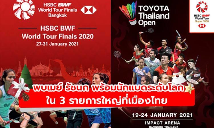สมาคมกีฬาแบดมินตันแห่งประเทศไทย ในพระบรมราชูปถัมภ์ ได้รับความไว้วางใจจาก สหพันธ์แบดมินตันโลก ให้เป็นเจ้าภาพจัดการแข่งขันแบดมินตันรายการสุดยิ่งใหญ่ 3 รายการติดต่อกันในระยะเวลา 3 สัปดาห์ในเดือนมกราคมปีหน้า ณ อิมแพค อารีน่า เมืองทองธานี ได้แก่ โยเน็กซ์ ไทยแลนด์ โอเพ่น เงินรางวัลรวม 1 ล้านเหรียญสหรัฐ ระหว่างวันที่ 12-17 มกราคม 2564, โตโยต้า ไทยแลนด์ โอเพ่น ชิงเงินรางวัลรวม 1 ล้านเหรียญสหรัฐ ระหว่างวันที่ 19-24 มกราคม 2564 และเอชเอสบีซี บีดับเบิ้ลยูเอฟ เวิลด์ทัวร์ ไฟนัลส์ 2020 ชิงเงินรางวัลรวม 1.5 ล้านเหรียญสหรัฐ ระหว่างวันที่ 27-31 มกราคม 2564